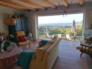 Haus Ca Teotihuacan (Sitz der Göttinnen), hoch gelegenen in der bergigen Landschaft an der Costa Blanca hat eine fantastische Aussicht auf das Meer und die unten liegenden Ortschaften.